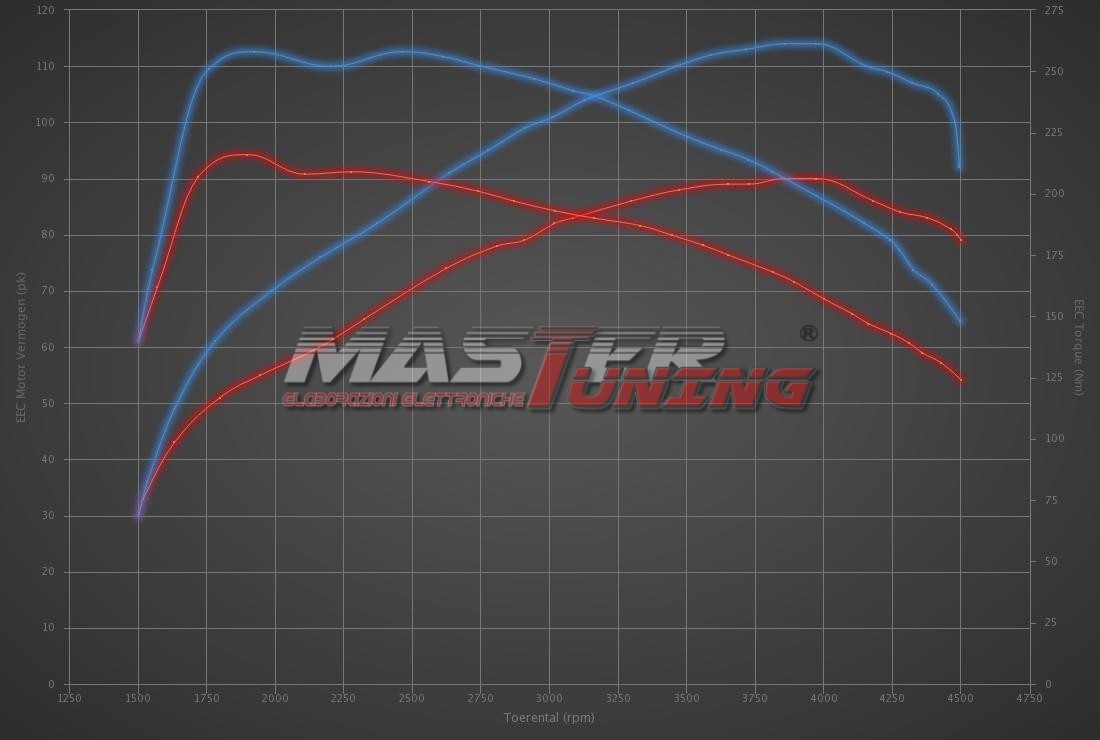 Lo sviluppo di ogni rimappatura per Renault Kangoo 1.5 DCi 90hp è personalizzato dai programmatori di MasterTuning.